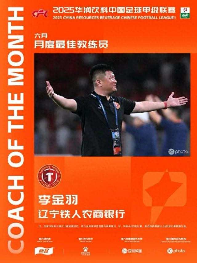 北京时间7月17日,中甲联赛6月最佳教练的评选结果出炉。辽宁铁人的主教练李金羽凭借2胜1平的战绩,荣获中甲联赛6月最佳教练。