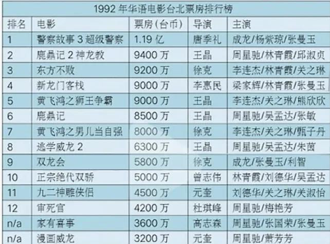 也就是说,1992年的周星驰虽然在香港市场称王称霸,但总票房与成龙还是拉开了不小的差距,更别说谈单部电影的票房。